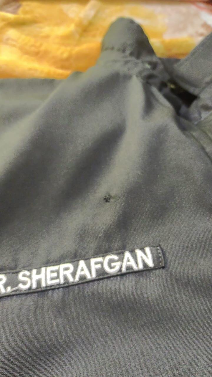 This kit includes executive-style collar with one chest pocket top and elastic waistband cargo pants.